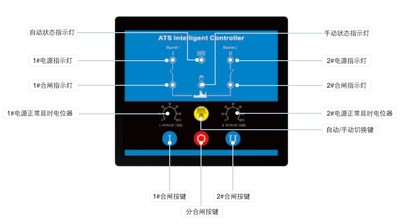 SKR2-A双电源自动转换开关控制器以微处理器为核心构成,可精确地检测两路三相/单相电压,对出现的电压异常(失电、过压、欠压、缺相、过频、欠频)做出准确的判断,经延时后控制ATS切换。